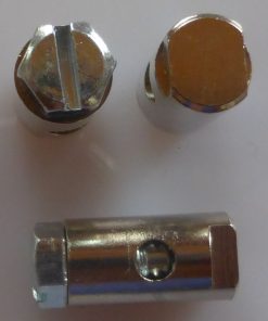 Schaft-D. 8.0 mm, L=14 mm, aus MS, blank, mont. mit Ring 8×4,5 mm und Mutter M 5, aus MS blank, Bohrungs-D. 2,3 mm